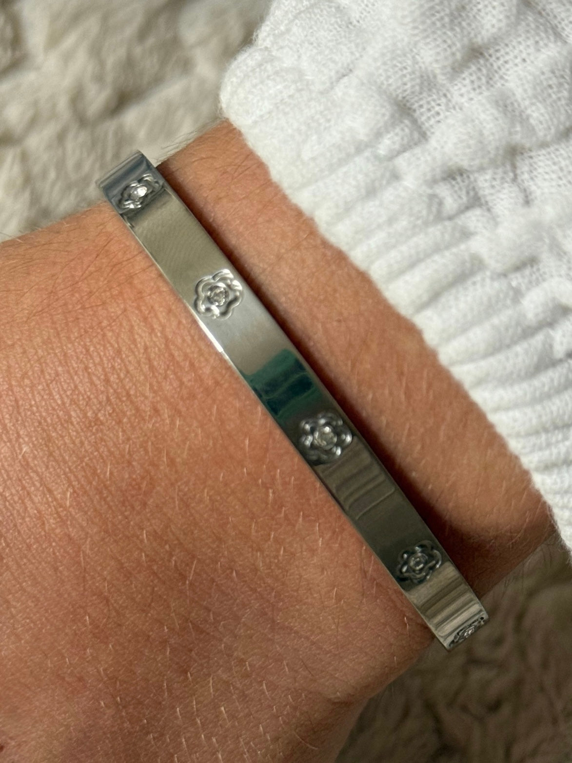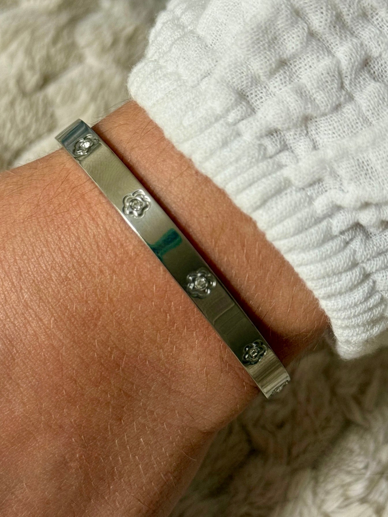 Un jonc chic et frais, au charme fleuri et lumineux. ✨ S’ouvre facilement grâce à son discret système de clip latéral.