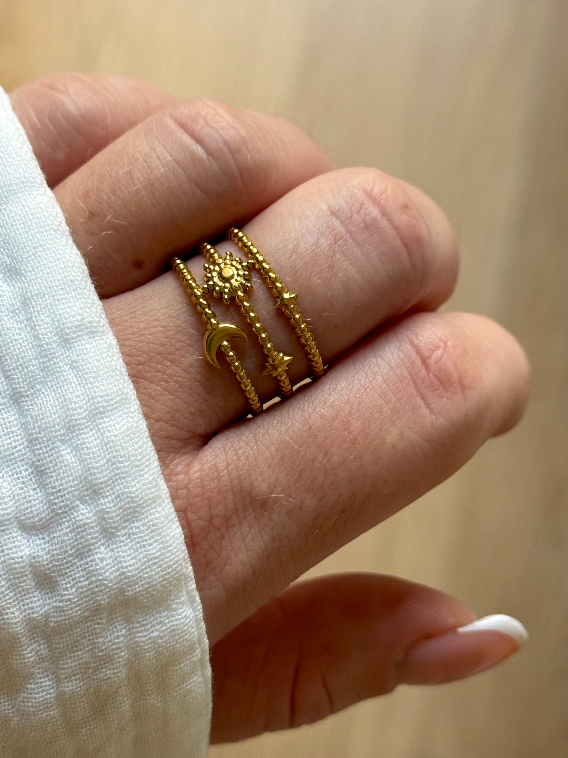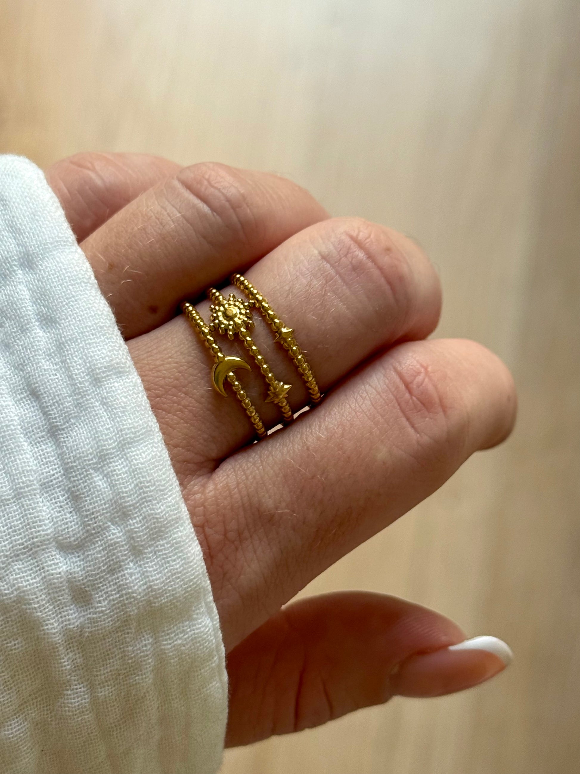 La bague Astres, c’est la petite touche de lumière qui rayonne au quotidien… 🌙✨