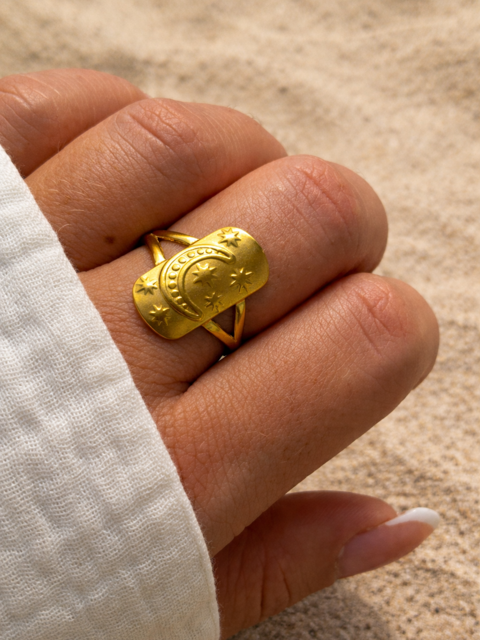 La bague Astres, c’est la petite touche de lumière qui rayonne au quotidien… 🌙✨