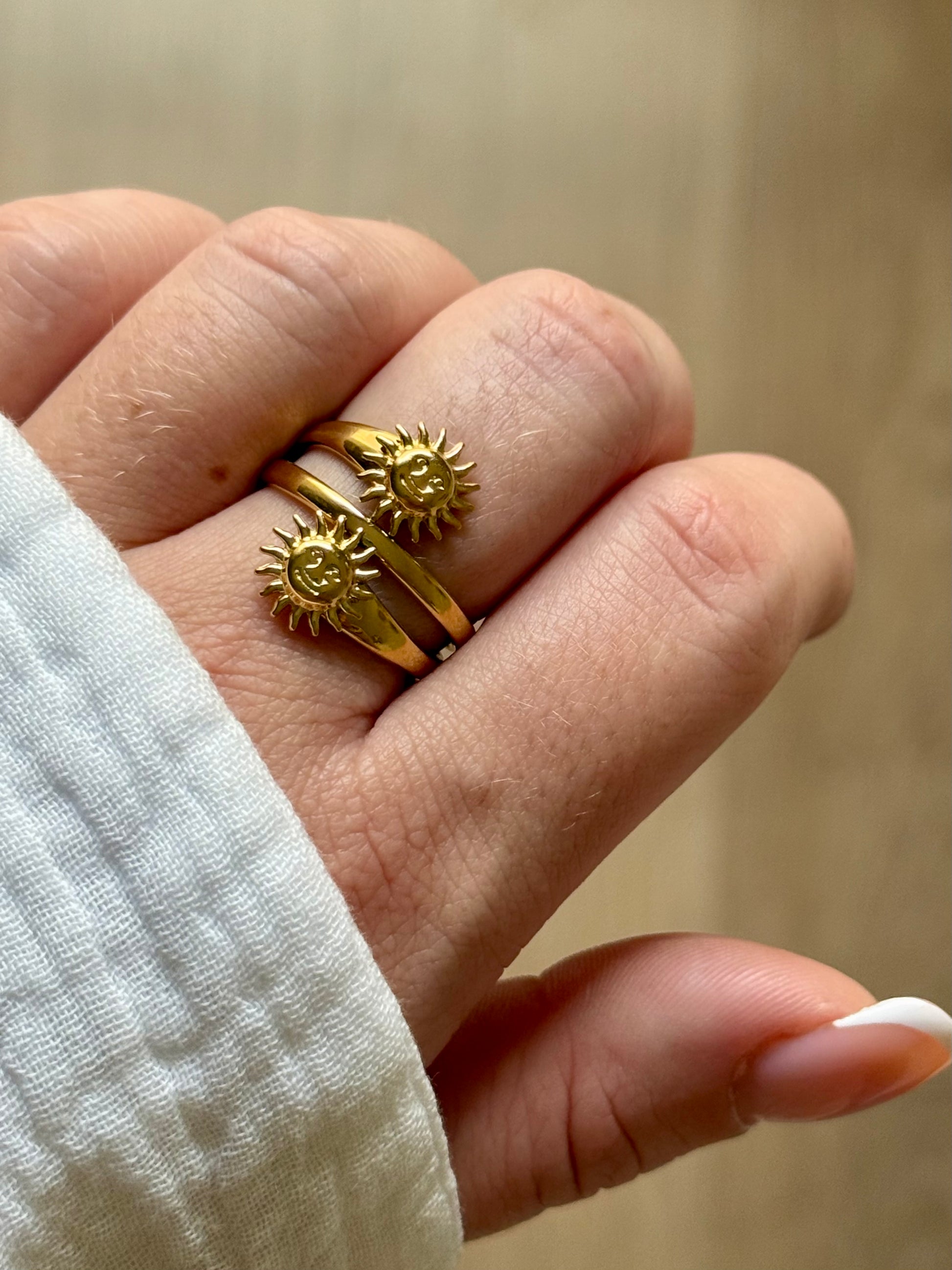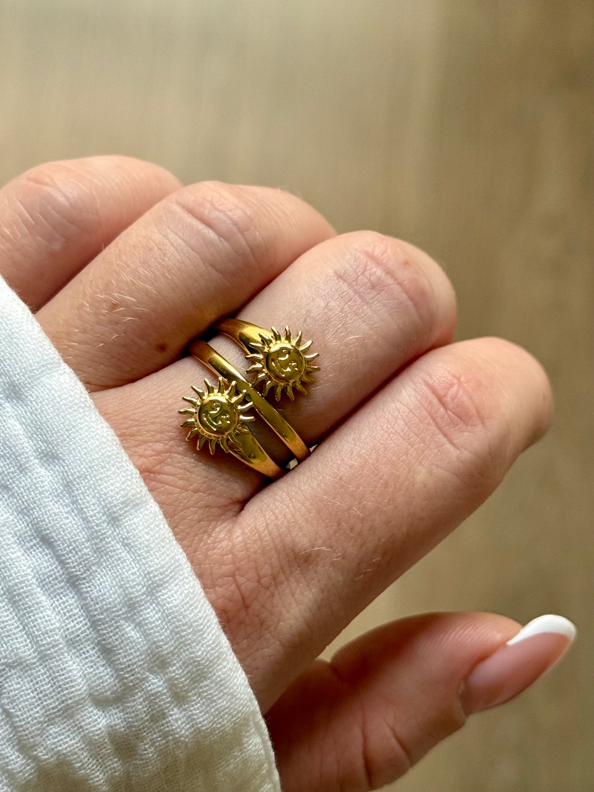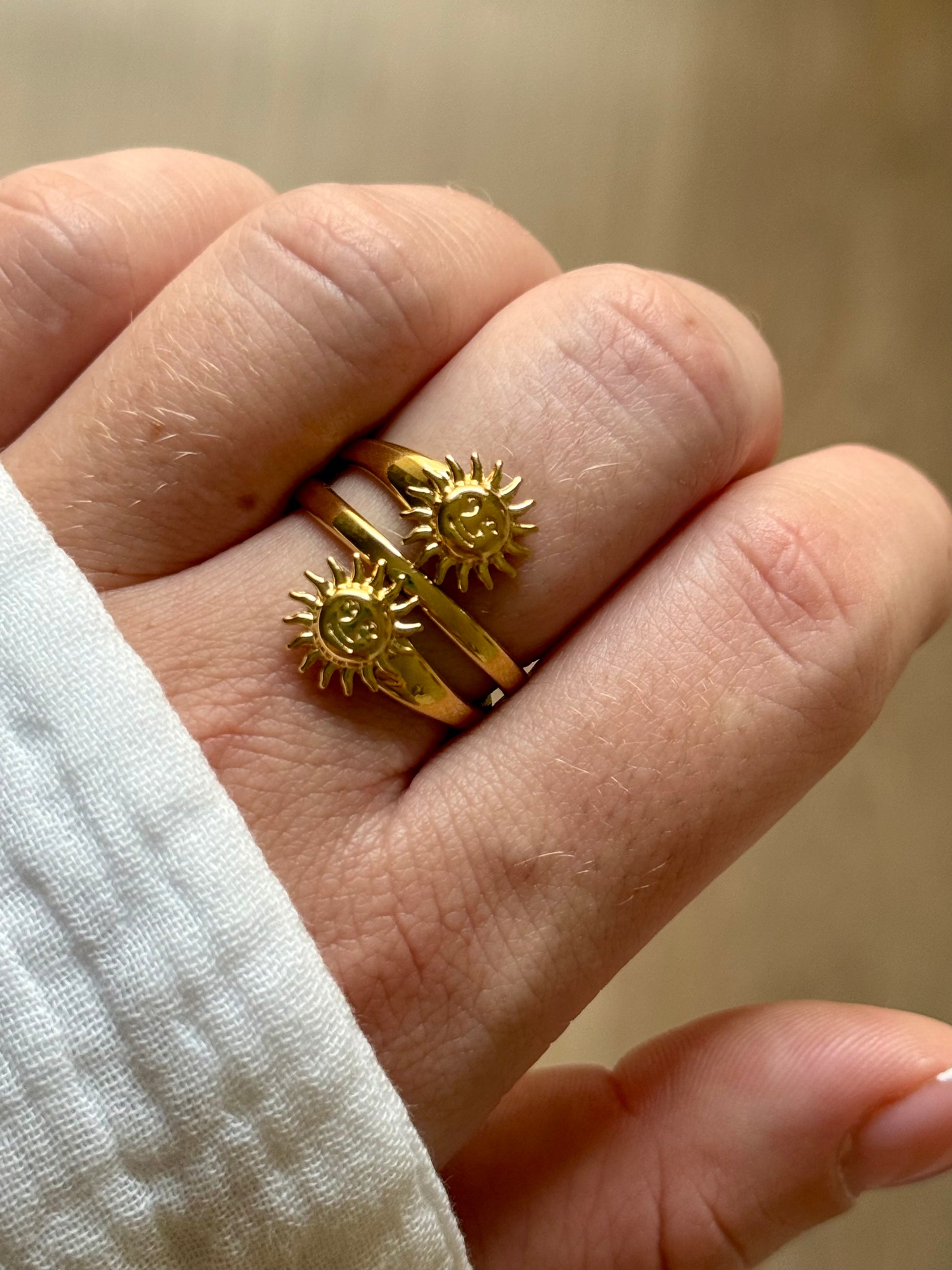 La bague Astres, c’est la petite touche de lumière qui rayonne au quotidien ☀️🌙 Un bijou plein d’ondes positives, à la fois bohème et solaire, qui te suit dans toutes tes vibes du moment. ✨