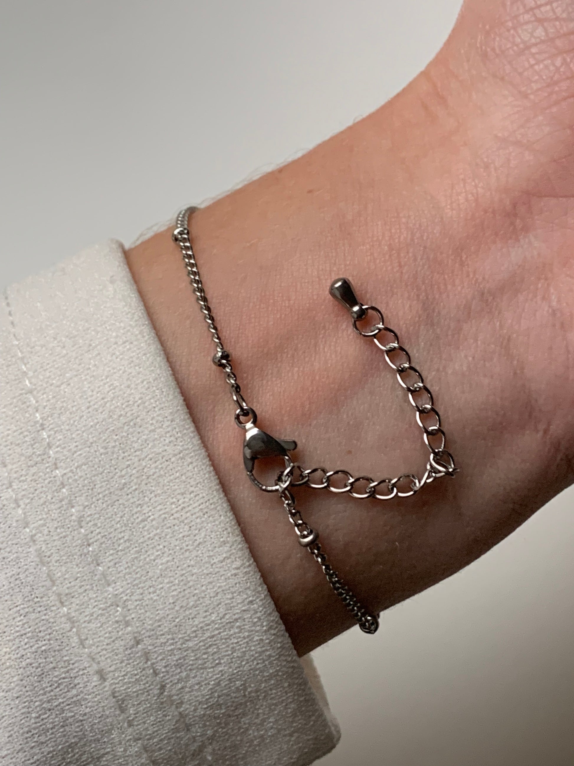 Nos bijoux sont en acier inoxydable hypoallergénique 🌊 : ils résistent à l’eau, ne rouillent pas et gardent leur couleur dans le temps.
