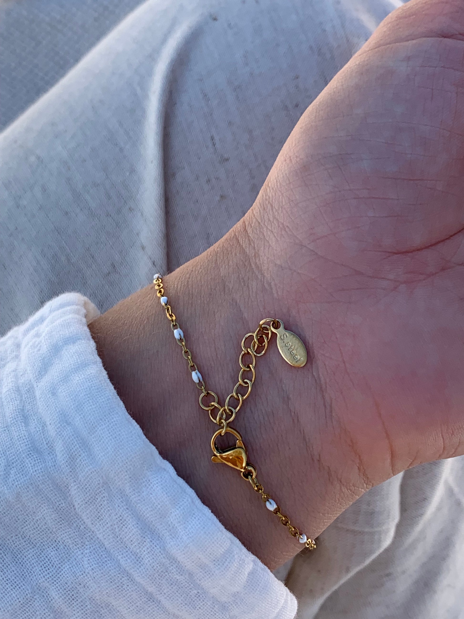 Nos bijoux sont en acier inoxydable hypoallergénique 🌊 : ils résistent à l’eau, ne rouillent pas et gardent leur couleur dans le temps.