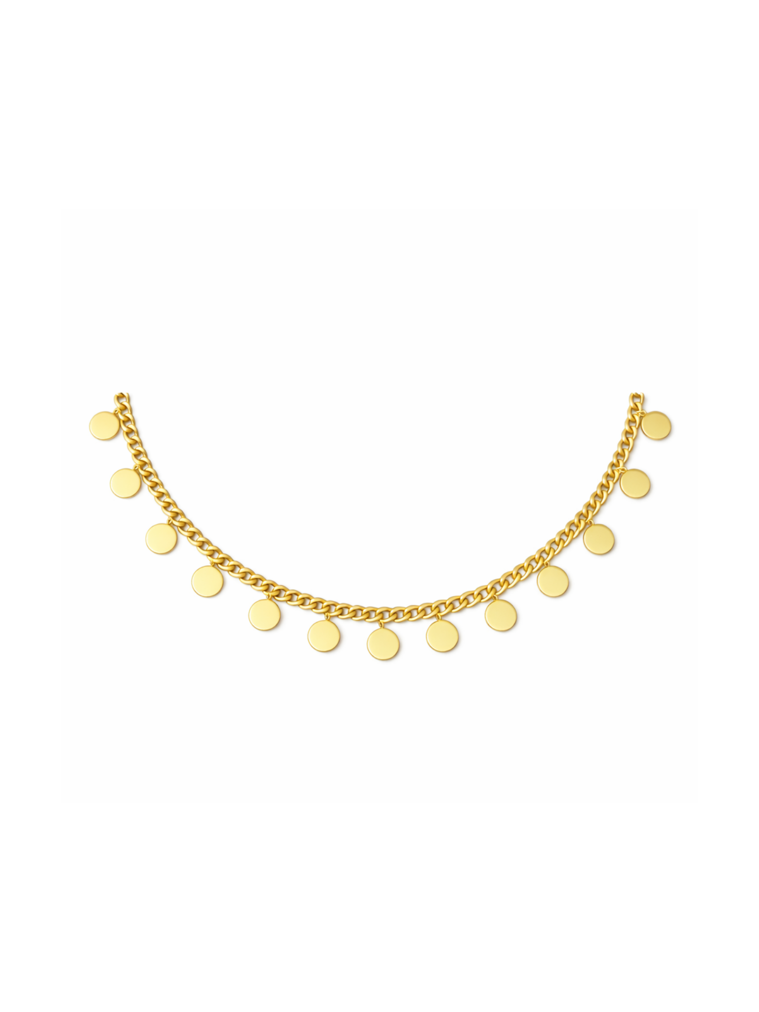 Ses charms ronds captent la lumière à chaque mouvement et donnent à la pièce une vraie présence. Un collier fort, assumé, qui habille instantanément le décolleté et ne laisse personne indifférent. ☀️