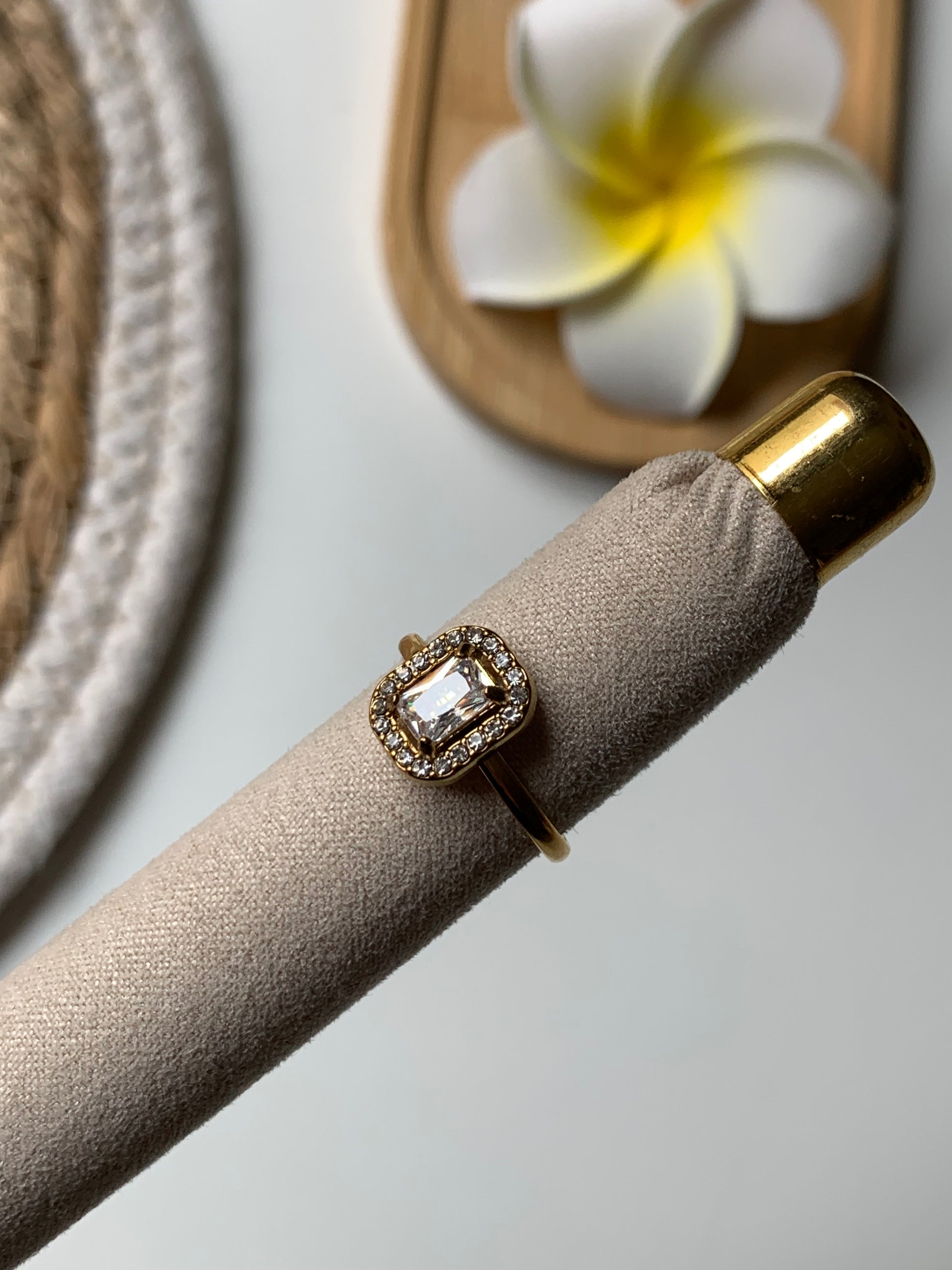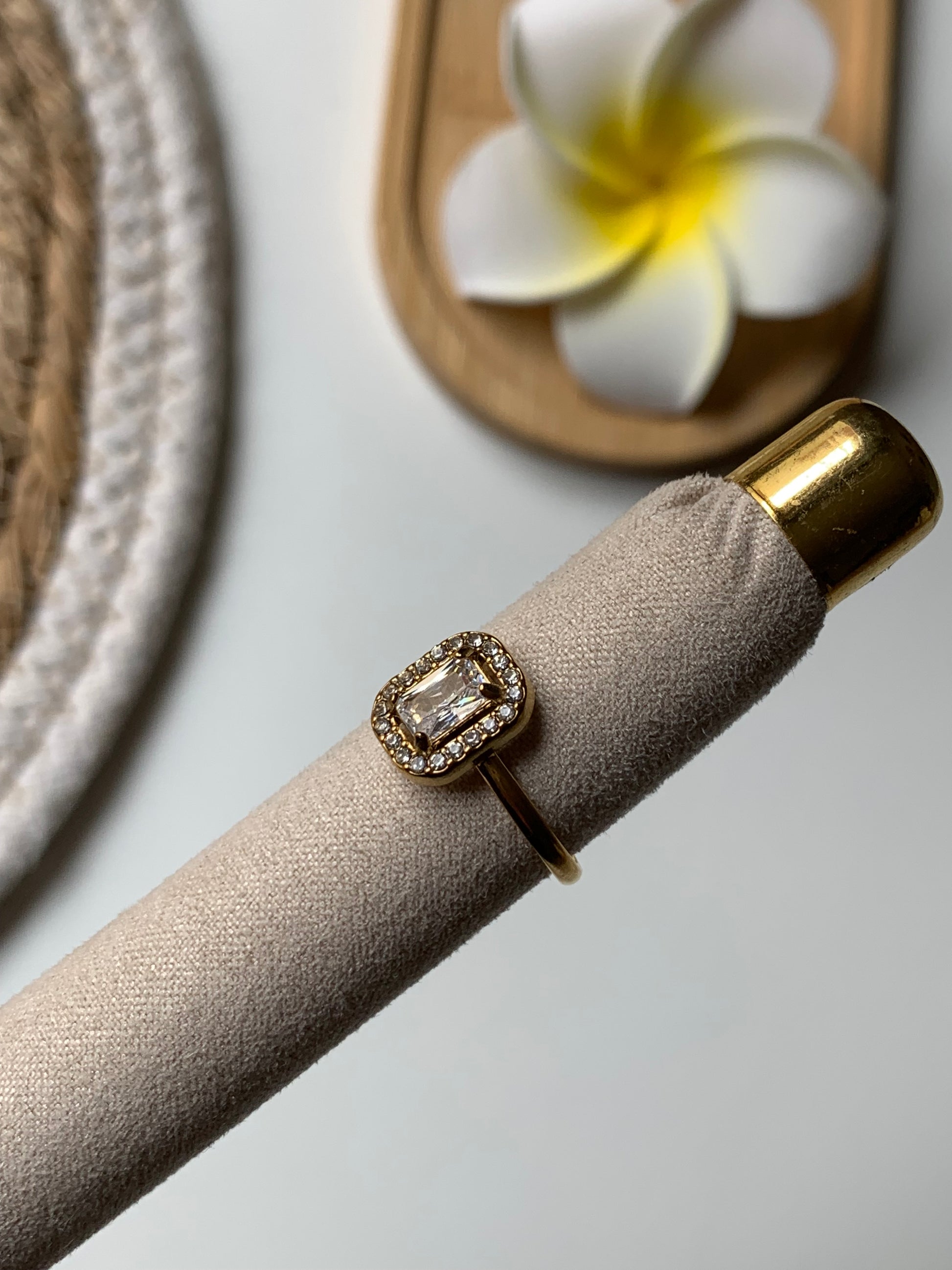 Acier doré et pierre zirconium blanc. ✨